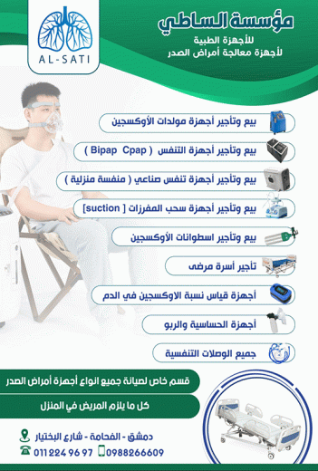 احمد الساطيتجهيزات طبية وتجهيزات ومستلزمات اطباء صدرية وتجهيزات تنفس واوكسجين