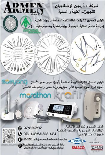 ألدكتور ارمين لوشفاجيانكافة التجهيزات الطبية اللازمة للجراحة والتجهيزات السنية والطبية
