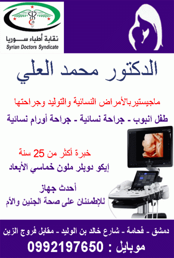 الدكتور محمد العليماجيستير جراحة نسائية - توليد - جراحة تنظيرية - عقم - حقن صناعي - طفل انبوب - جراحة اورام - خبرة اكثر ن 25 سنة